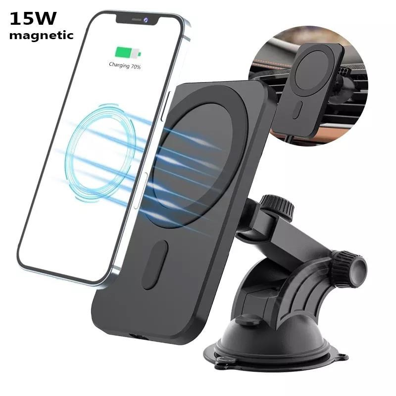 Kvalitní výkonná bezdrátová magnetická nabíječka do auta s podporou Apple MagSafe. Vybavená dvěma držáky, zvolit tak můžete buď variantu do ventilace, nebo otočný a výsuvný držák s přísavkou.