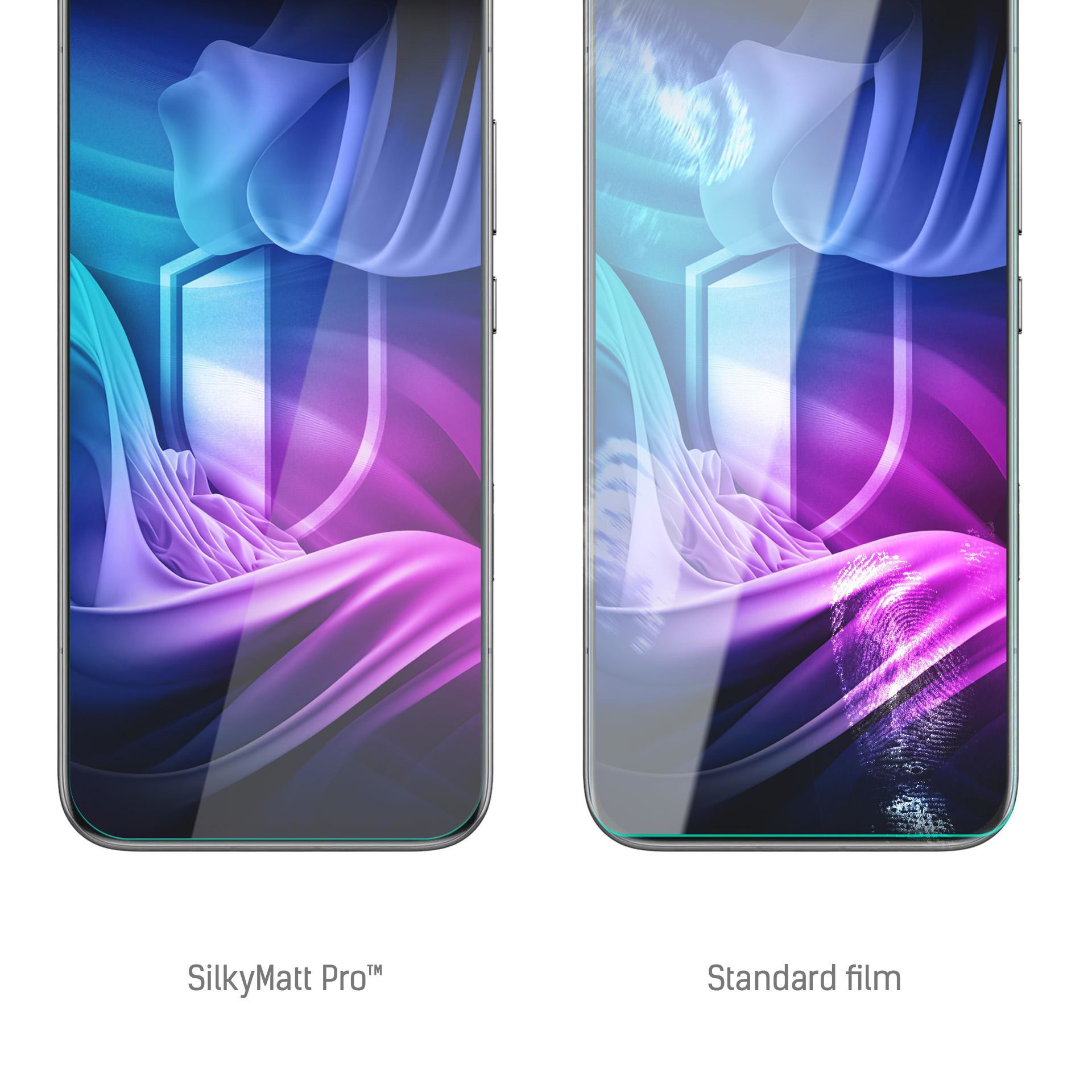 SilkyMatt Pro je ochranná fólie, která je bezohledná vůči každodenním rizikům. Zesiluje obrazovku chytrého telefonu až o 400%! Jednou z vrstev ve víceprvkové struktuře je mnohokrát přetestován protinárazový základ. Jeho přítomnost výrazně minimalizuje riziko poškrábání a poškození displeje při pádu na tvrdý povrch a kontaktu s ostrými předměty. Se SilkyMatt Pro ušetřete si stres a drahé výměny obrazovky. Můžete používat telefon kdy chcete a nosit jej tak, jak máte rádi.