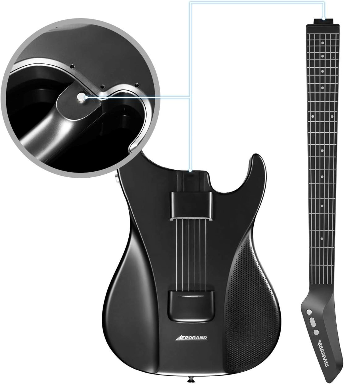 S 3,5mm audio výstupem pro sluchátka je AeroBand kytara kompatibilní jak s náhlavními, tak se špuntovými sluchátky a díky funkci Bluetooth i s bezdrátovými sluchátky. Díky tichému provedení můžete cvičit a hrát, aniž byste rušili ostatní – ať už jste doma, na cestách nebo venku. Seznamte své přátele s novým přístupem ke hře na kytaru díky AeroBand Guitar. Je to ideální způsob, jak probudit zájem, zejména u těch, kteří se s tradiční kytarou ještě nesetkali.