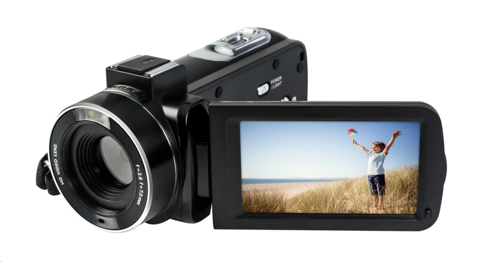 Videokamera Realimove CC2700 vám zajistí dobré pohodlí při natáčení životních okamžiků v rozlišení 2,7K. Má ergonomický úchop a 3" dotykovou obrazovku. Při natáčení můžete také využít 18× digitální zoom. Kloubový LCD displej vám umožní sledovat vše, co právě nahráváte. Videokamera CC2700 nenatáčí jen videa, ale také umožňuje pořizovat velmi krásné fotografie v rozlišení 24 MP.