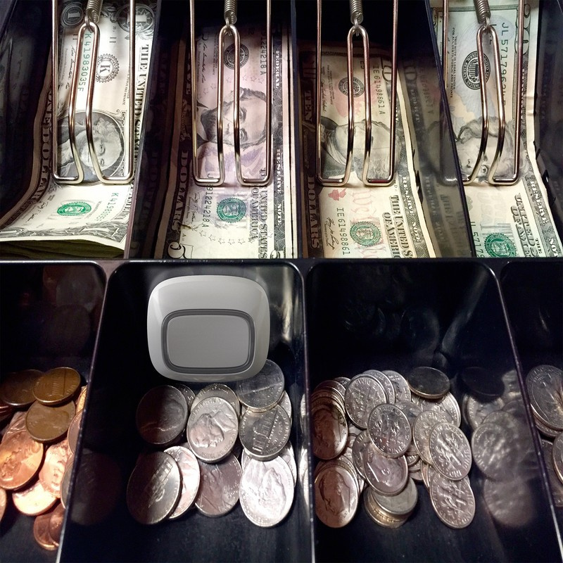 Bezdrátové tísňové tlačítko s ochranou proti náhodné aktivaci. Z předinstalované baterie je napájeno až po dobu 5 let.