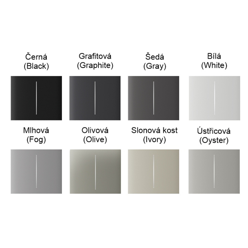 Aby se LightSwitch hodil do domu, bytu, ale i do průmyslového závodu, nabízíme 8 různých barevných provedení dotykových tlačítek.