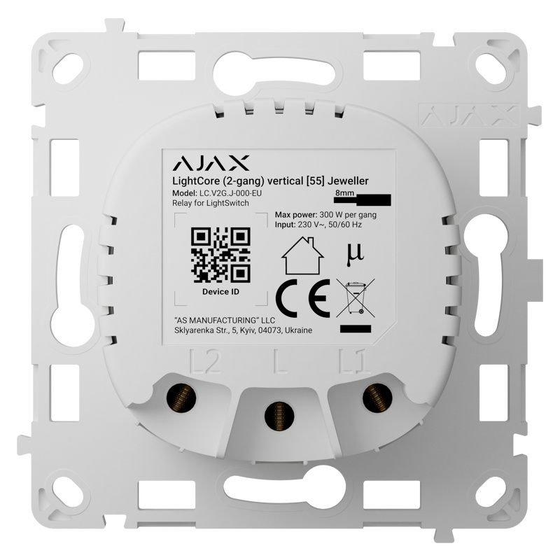 Ajax LightCore 2-gang - relé - vertikální instalace