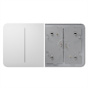 Kombinovaný vypínač se skládá ze 2, 3, 4 nebo 5 relé, dotykových tlačítek a rámečku s odpovídajícím počtem otvorů. Místo vypínače lze použít i inteligentní zásuvku Ajax