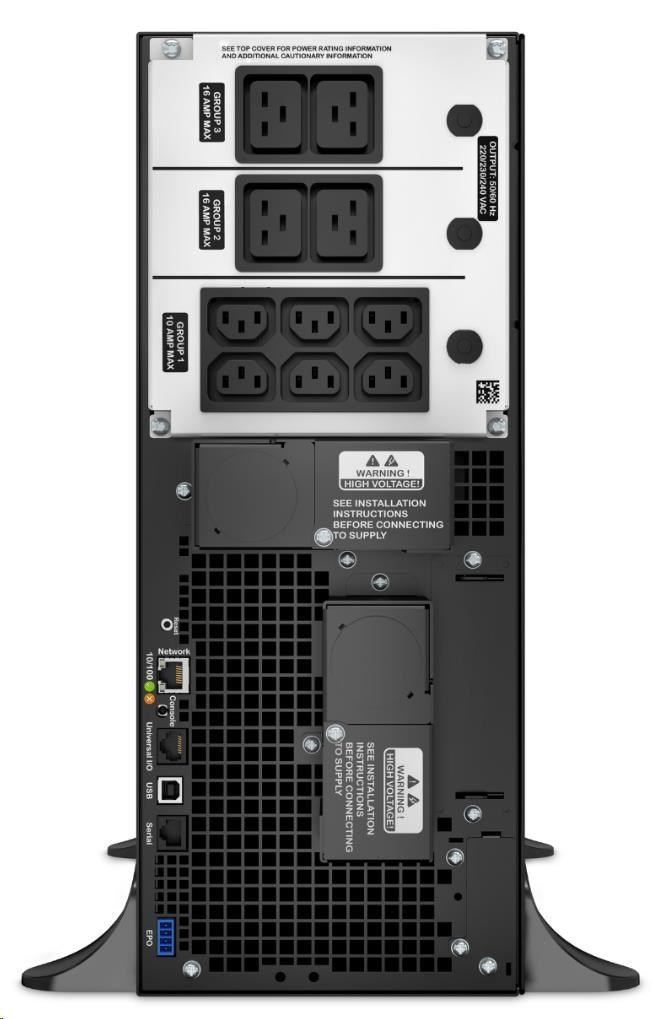 | Dodávka obsahuje | CD se softwarem, Disk CD s dokumentací, Instalační příručka, Záruční karta, EPO Terminal block, Teplotní čidlo, Kabel USB, Kabel RJ45-DB9, Kabel Console-DB9, 2ks kabel 2m C19-C20, Odnimatelné podpěry |