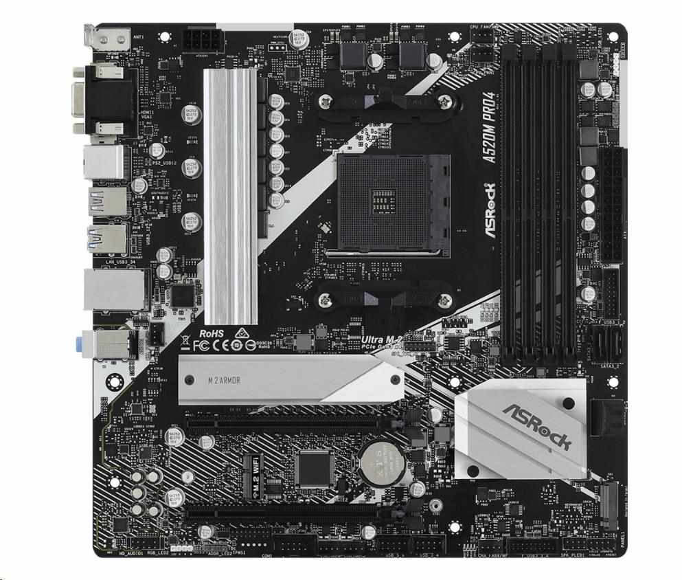 ASRock MB Sc AM4 A520M PRO4, AMD A520, 4xDDR4, HDMI, DP