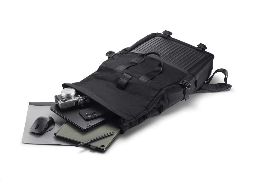 Batoh ProArt PP4600 má velkou vnitřní přihrádku, do které se vejde až 16palcový notebook, tablet a další mobilní zařízení nebo periferie. Funkční popruhy na bocích a dně nabízejí univerzální možnosti uložení předmětů, jako jsou láhve s vodou, deštníky a stativy.