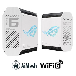ROG Rapture Wifi 6 802.11ax Tri-band Gigabit Gaming Mesh System Wifi 6 802.11ax 574Mbps (2.4G) Wifi 6 802.11ax 4804Mbps (5GHz-1) Wifi 6 802.11ax 4804Mbps (5GHz-2) Data rate: 10000Mbps Whole home mesh wifi system for large and multi-story homes Supports flexible SSID setting, wired inter-router connections OFDMA + MU-MIMO tech, 1024 QAM, 2.5G WAN port, Triple level Game Acceleration, Aura RGB lighting, AiProtection Pro, VPN Fusion, Instand Guard Adaptive QoS, Bandwidth control, AiMesh, ASUS Roter APP (ROG theme).