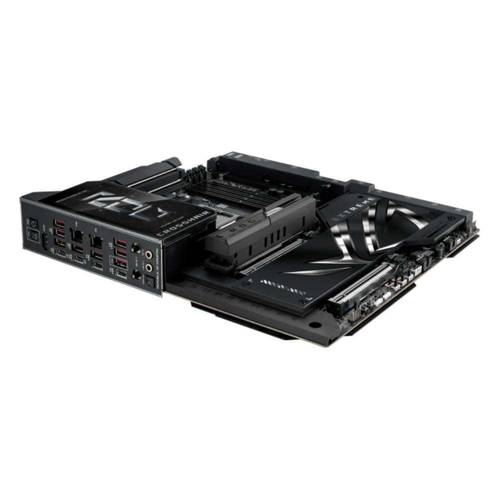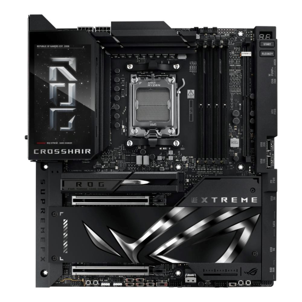 The ROG Crosshair X870E Extreme is the flagship AMD Ryzen 9000 series motherboard, designed for the most discerning users. It provides the ultimate foundation for AM5 CPUs, DDR5 memory, and PCIe 5.0 components to ensure maximum performance and future-readiness. Its comprehensive connectivity includes USB4, and the integrated 5-inch LCD offers a unique way to monitor system performance or add a touch of personalized style.