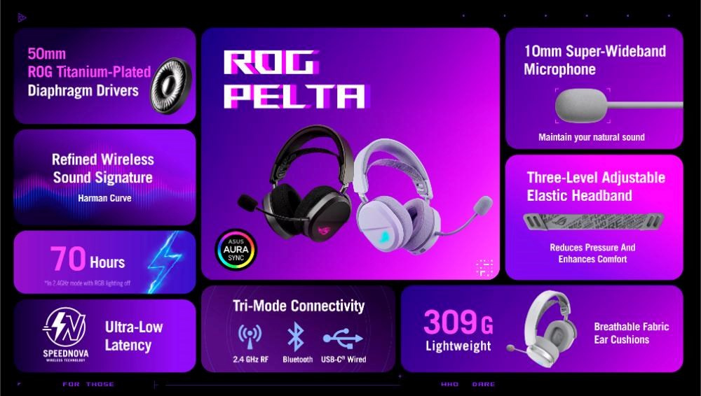 ASUS sluchátka ROG Pelta, Bezdrátové BT a RF 2.4GHz, ARGB, bílá
