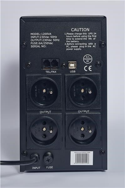 Počet výstupních zásuvek:4; Použití:Desktop; Provedení:Tower; Zdánlivý výkon VA:1200; Topologie:Line-Interactive; Fáze (Vstup/Výstup):1:1; Typ výstupu:FR; Ochrana telefonní sítě.
