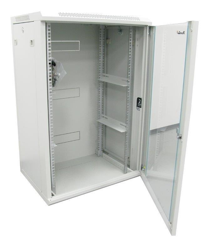 BAZAR - XtendLan 19" nástěnný rozvaděč 15U 600x450, nosnost 60 kg, skleněné dveře, svařovaný, šedý - poškozený obal