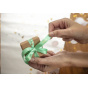 BROTHER TZE-RM34 - kazeta TZ šířky 12mm, TEXTILNÍ páska 4m- pro tvorbu dárků - NELEPÍCÍ - MÁTOVÁ PÁSKA ZLATÝ POTISK gold