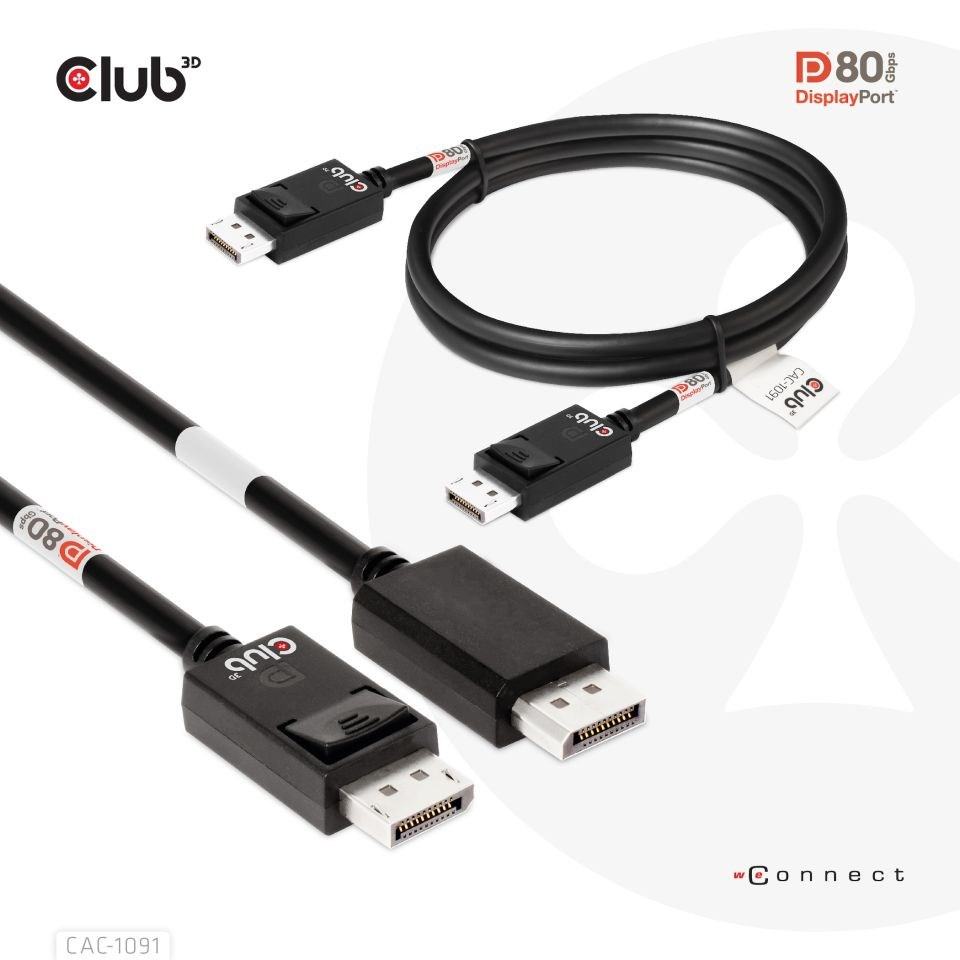 Club3D Kabel DisplayPort 2.1 na DisplayPort 2.1 VESA DP80, 4K240Hz/8K60Hz/10K30Hz HDR (M/M), 1.2m, černá