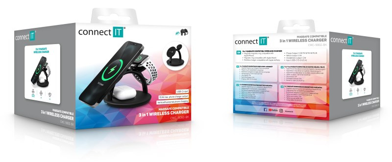 CONNECT IT Bezdrátová nabíječka 3v1 MultiCharge MagSafe pro IPhone, Apple Watch a AirPods, 15 W, Černá