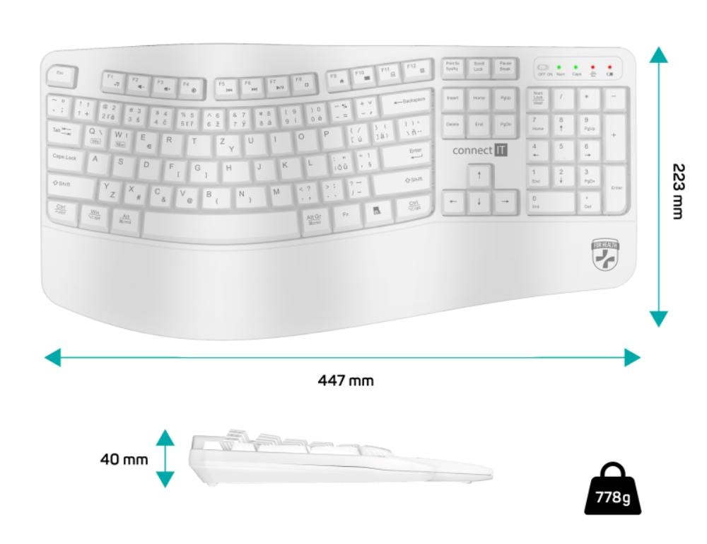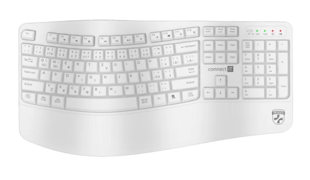 CONNECT IT FOR HEALTH Ergonomická klávesnice ErgoOffice, Bezdrátová, CZ+SK, bílá