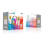 Přední panel disponuje barevným LED podsvícením s možností přepínání několika světelných módů a v horní části reproduktoru se nachází všechna potřebná ovládací tlačítka. Díky dvěma mikrofonům s několika zvukovými efekty si užijte spousty zábavy s přáteli. Baterie s kapacitou 1200 mAh zabezpečí až 6 hodiny přehrávání a lze ji nabíjet pomocí dodávaného USB-C kabelu z jakékoliv USB nabíječky nebo power banky.