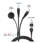 Univerzální nabíjecí kabel 6v1 pro nabíjení zařízení s konektory 1x USB-C, 1x Lightning a 1x nabíječka na chytré hodinky (kompatibilní s Apple Watch) se vstupním konektorem USB-C a redukcí na USB-A. Umožňuje nabíjení až tří zařízení současně s podporou rychlého nabíjení pomocí max. proudového toku 5 A. Speciální manžetová nadstavba konektorů zaručuje lepší přístupnost k nabíjecím zdířkám mobilních telefonů v pouzdrech.