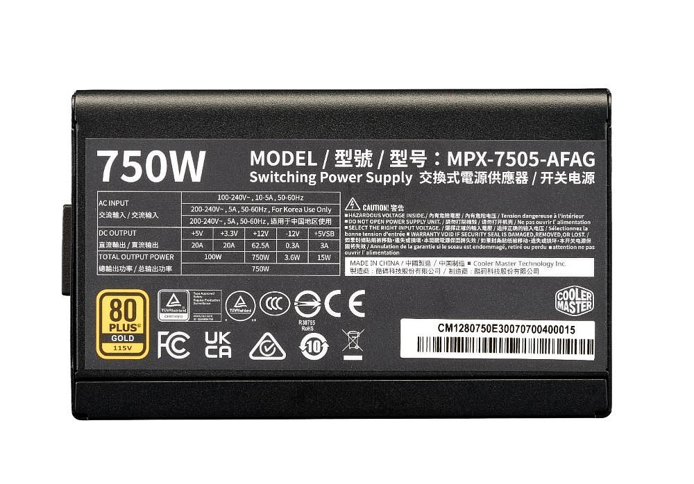 Cooler Master zdroj ELITE Gold 750W FM, 120mm, Plně modulární, 80 Plus Gold, ATX 3.1