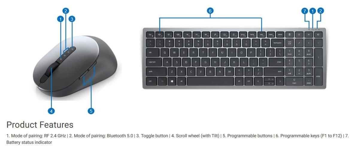 DELL Multi-Device Wireless Keyboard and Mouse - KM7120W - Czech/Slovak