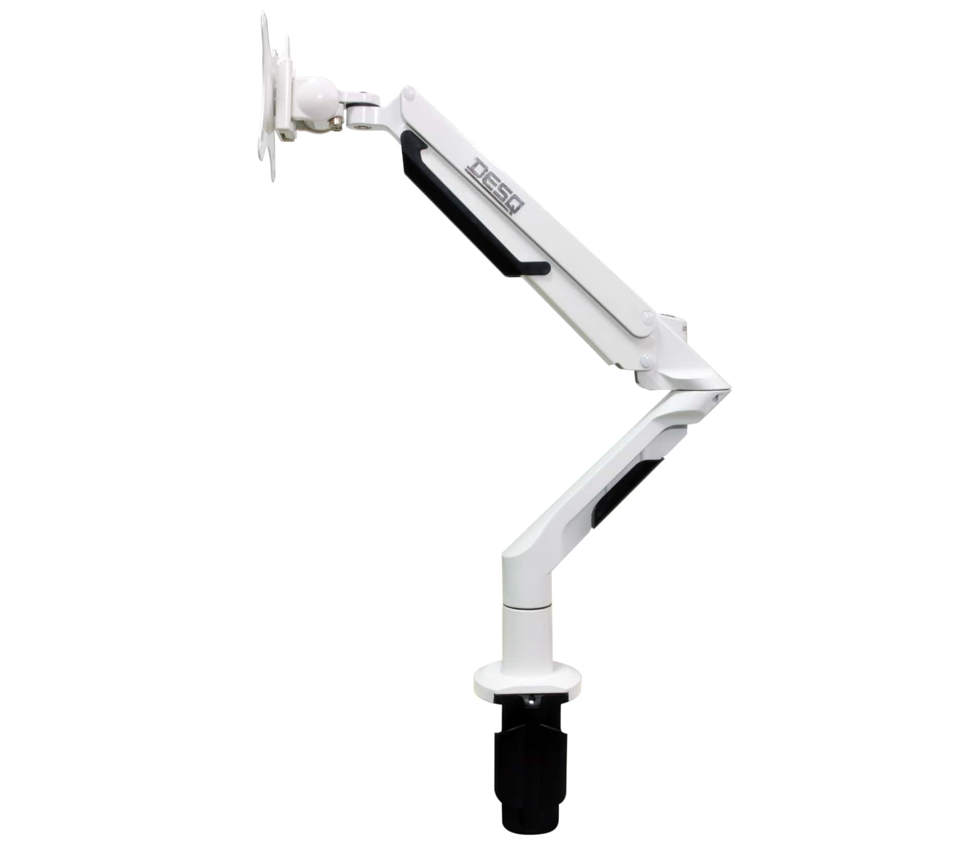 Vylepšete svou domácí kancelář nebo pracovní prostor s DESQ monitorovým ramenem s plynovou pružinou, které umožňuje snadné nastavení výšky, vzdálenosti a úhlu monitoru. Díky extra dlouhému dosahu 62 cm je ideální pro větší pracovní plochy nebo pro uživatele, kteří potřebují flexibilitu v umístění svého monitoru. Bílá barva. ? Plynová pružina pro snadné a přesné nastavení výšky jedním dotykem ? Kompatibilní s monitory od 17” do 36” (VESA 75x75 mm a 100x100 mm) ? Nosnost od 3 kg do 12 kg ? Montáž pomocí C-Clamp + Desk-thru pro flexibilní a bezpečné uchycení ? Rychloupínací VESA deska pro jednoduchou a rychlou instalaci monitoru ? Integrovaný systém pro správu kabelů udržuje váš pracovní prostor přehledný ? Možnost snadné rotace mezi režimem na výšku a na šířku S DESQ monitorovým ramenem snadno nastavíte výšku, vzdálenost a úhel obrazovky tak, aby byla v ergonomicky ideální poloze, čímž se snižuje namáhání krku, zad a očí. Zvednutím monitoru z pracovní plochy uvolníte cenné místo na stole a vytvoříte efektivnější pracovní prostředí..