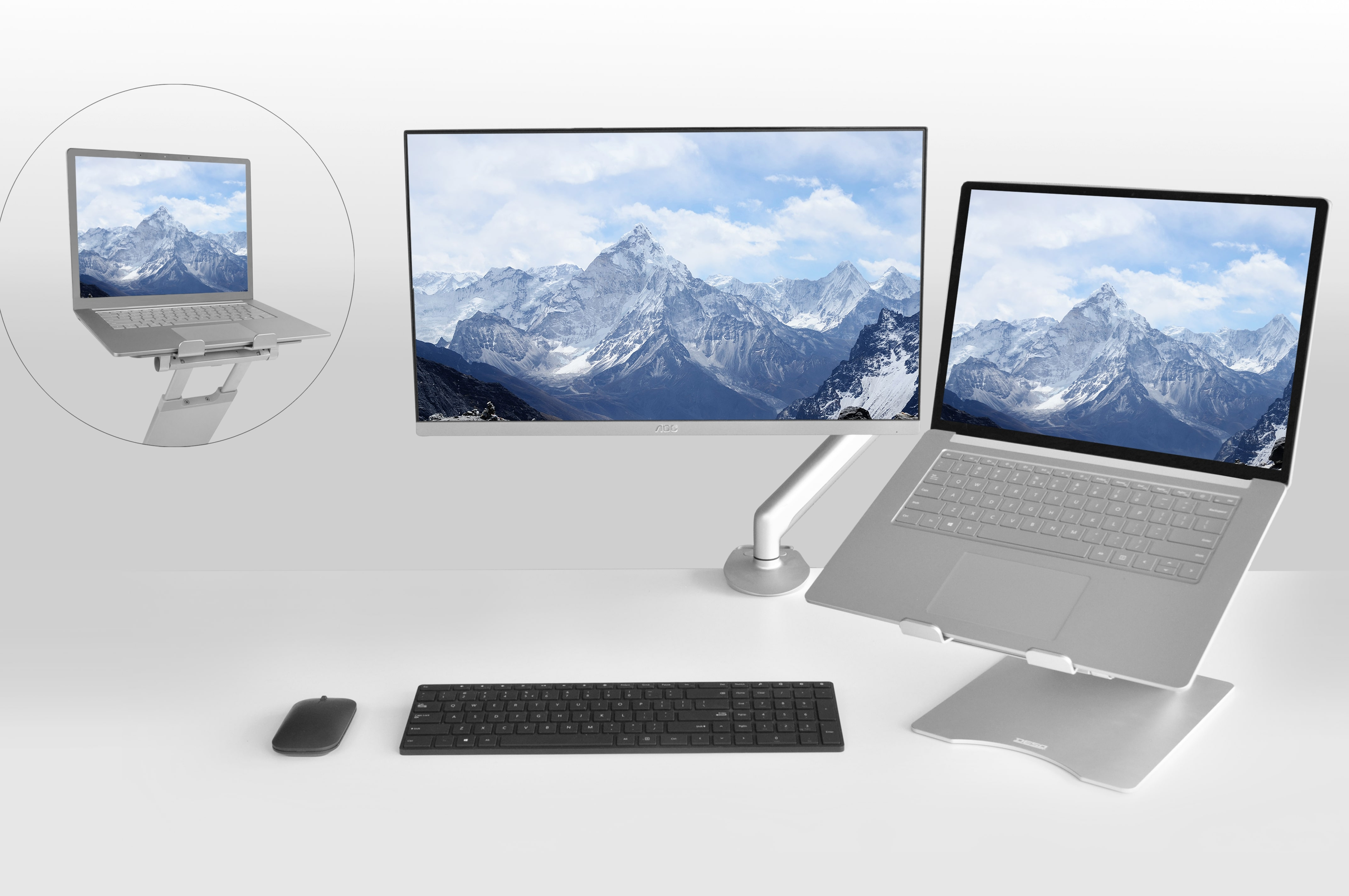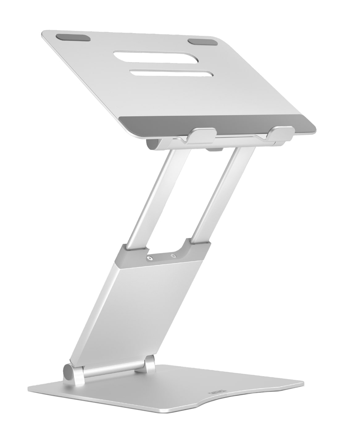 Tento plně nastavitelný stojan na notebook vám umožní umístit obrazovku do úrovně očí, ať už sedíte, stojíte nebo se nacházíte mezi těmito polohami. Je ideální pro zajištění ergonomicky správného držení těla při práci, jako řečnický pult při prezentacích nebo dokonce jako stojan na kuchařku při vaření. ? Plně nastavitelný jediným tlačítkem: snadná úprava výšky od 30 do 450 mm ? Zvedá obrazovku až o 45 cm pro optimální komfort sledování ? Platforma nastavitelná až do úhlu 70 ° pro nejlepší pozorovací úhel ? Výřezy v konstrukci podporují proudění vzduchu a ochlazují notebook ? Vyroben z pevné a odolné hliníkové slitiny ? Silikonové podložky a nožky pro stabilitu a ochranu proti skluzu S DESQ stojanem na notebook nastavíte displej do ideální výšky, což podporuje zdravé a ergonomické držení těla a pomáhá předcházet bolesti zad, krku a únavě očí..
