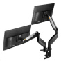 Nastavitelný držák pro dva monitory o hmotnosti od 2 kg do 8 kg, TOP design a kvalita Velmi kvalitní stolní držák pro zavěšení 2 monitorů na stolovou desku v kanceláři, pracovně nebo domácnosti. Monitory je možné nezávisle otáčet do stran, naklápět, posouvat. Možná je i úprava výšky od stolové desky, horizontální i vertikální otáčení obrazovky, korekce roviny. Pouze jednou nastavíte hmotnost Vaších monitoru na držáku a dále už nebute muset používat žádné nářadí. Velmi pěkný design, kvalitní bezpečná konstrukce, snadná manipulace. Polohovatelný stolní držák na dva monitory do kanceláře Technické údaje: celková nosnost 16kg zavěšení 2 monitorů s hmotnosti 2-8kg doporučujeme na monitory 19" až 30" náklon +55°/-8° natočení monitoru vpravo-vlevo o 180° otáčení ramena o 360° funkce PIVOT - otočení monitoru o 360° minimální výška monitoru od pracovní desky 230 mm (střed monitoru) maximální výška monitoru od pracovní desky 530 mm (střed monitoru) maximální tloušťka pracovní desky 90 mm nastavitelná vzdálenost do 625 mm Korekce roviny 2x USB port Systém pro skryté vedení kabeláže dva typy uchcení ke stolu - na okraj nebo skrz desku vestavěná pružina pro snadné nastavení výšky vysoká kvalita s důrazem na detail moderní design vyrobeno z hliníku a slitiny oceli snadná a rychlá instalace barevné provedení černé+chrom záruka 5 let Stolní držák F185A podporuje VESA standard: 75x75 100x100.