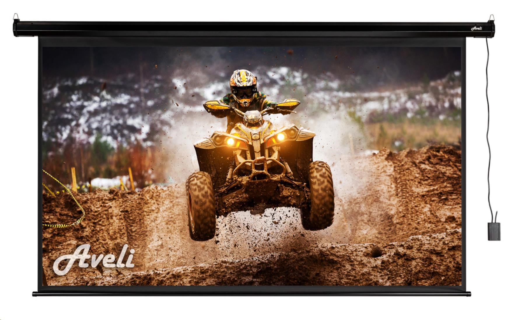 Elektrické projekční plátno AVELI, 204x115 (16:9) 92", černý tubus