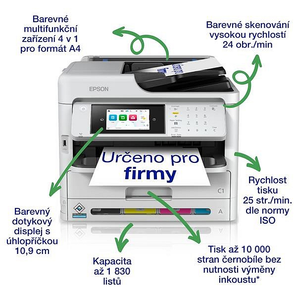 EPSON tiskárna ink WorkForce WF-C5890DWF, 4v1, A4, 25ppm, USB, LAN, Wi-Fi (Direct)