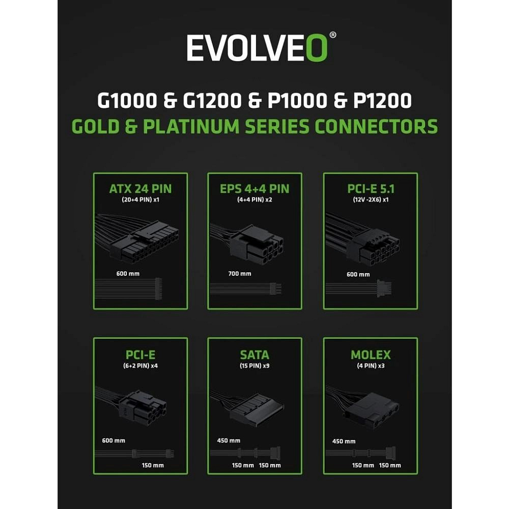 EVOLVEO G1000 zdroj 1000W, 80+ GOLD, ATX 3.1, aPFC, 140 mm ventilátor, záruka 3 roky, černý