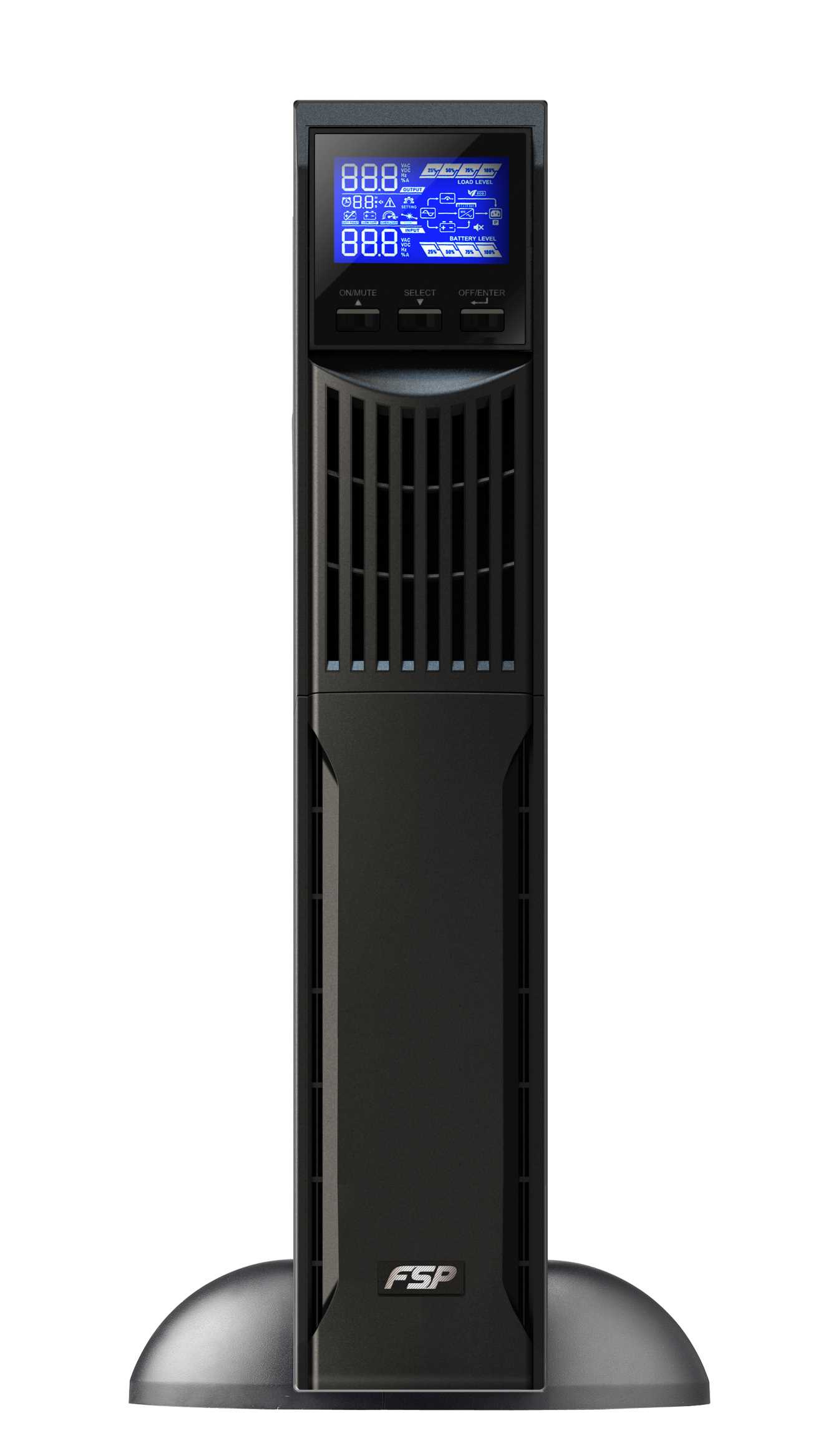 - Komplexní displej umožňuje snadné sledování stavu a přístup k UPS