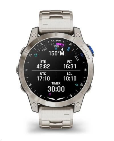 Bezkontaktní platby:Garmin Pay; Hodinkové funkce:24hodinový režim, Aktualizace OTA, Budík, Časovač, Stopky; Chytré funkce:Přehrávač hudby v hodinkách, Ovládání přehrávače hudby v mobilu, Hledání telefonu, Navigace, Obchod s aplikacemi, Předpověď počasí; Kompatibilní OS:Android, iOS; Konektivita:ANT+, Bluetooth, WiFi; Materiál pouzdra:Titan.