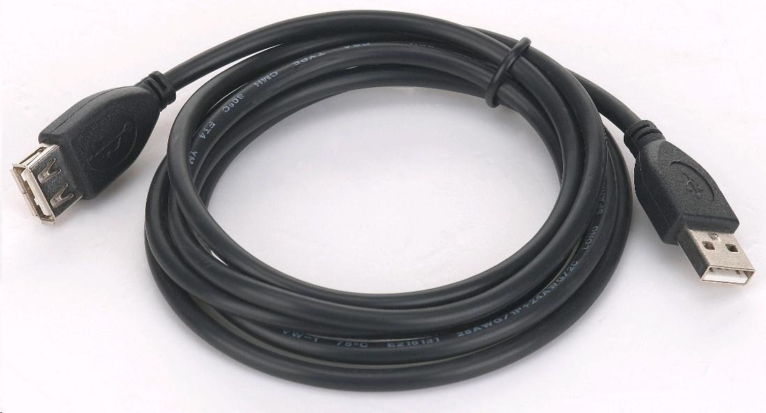 GEMBIRD Kabel USB 2.0 A-A prodlužovací 1,8m Professional (černý, zlacené kontakty)