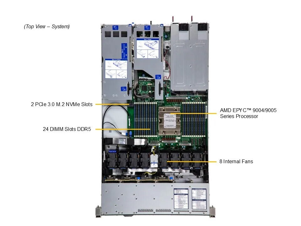 Procesory 1x AMD EPYC™ 9004/9005* Series Processors (*Podpora AMD EPYC™ 9005 vyžaduje revizi desky 2.x)