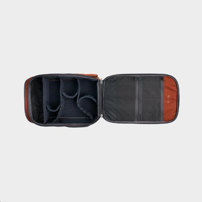 Díky funkcím, jako jsou vnitřní kapsy, externí slot na láhev s vodou a integrovaná brašna na přenášení stativu, je organizace bezproblémová a intuitivní. Přizpůsobitelný systém vnitřních přepážek umožňuje fotografům přizpůsobit výbavu každodenním potřebám.