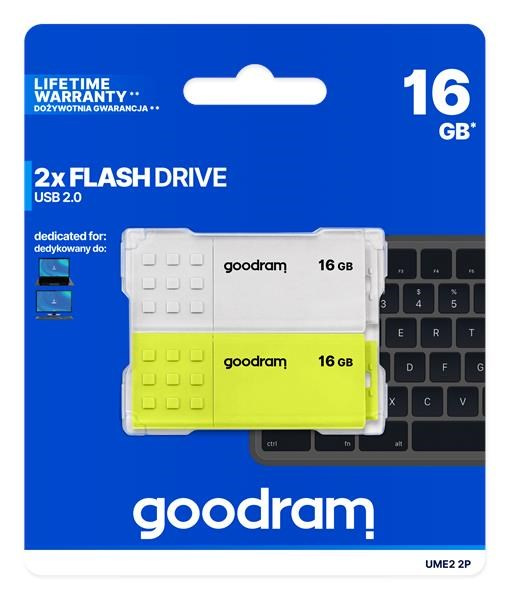 GOODRAM Flash Disk 2x16GB UME2, USB 2.0, bílá, žlutá