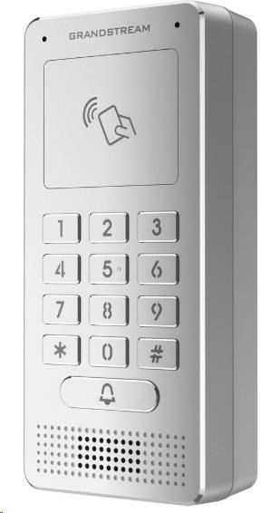 GDS3705 je dalším modelem Gransdtream IP dveřníku/vrátníku. Je vhodný pro ty, kteří hledají řešení přístupu a zabezpečení, které lze nasadit v různě situovaných prostředích. Nabízí SIP, VoIP technologii s dvoucestnou audio komunikací. Systém je vybavený dvěma mikrofony a HD reproduktorem s intercomem, který disponuje pokročilou funkcí automatické eliminace echa (AEC). Disponuje integrovanou RFID čtečkou, která umožňuje v kombinaci s RFID přívěskem, nebo RFID kartou, řídit přístup do budov či zvolených prostor. Balení produktu standardně obsahuje i již zmíněný RFID přívěsek a zmíněnou RFID kartu. Využít můžete ale i ty, které už ve firmě, či doma, máte. Například obědovou kartu do jídelny. Díky RFID technologii vám odpadá nutnost manipulace a distribuce standardních klíčů. Navíc při ztrátě RFID přívěsku, nebo RFID karty, můžete okamžitě přístup zakázat pomocí webmanagementu zařízení nebo aplikací výrobce, Grandstream GDS Manager, kterou lze stáhnout zdarma. Ta mimo jiné slouží pro celkovou autorizaci a katalogizaci RFID přívěsků, či karet. Napájení je řešeno přes PoE. Díky output/input relay je možné propojení se zámkem dveří, či alarmovou sirénou. I tady výrobce nabízí možnost komplexního řešení, takže GDS3705 lze snadno kombinovat s IP telefony Grandstream, video telefony řady GXV, aplikací GS-Wave pro mobilní telefony. Grandstream GDS3705: - voděodolné a anti-vandal provedení (IP66, IK09) - SIP, IP - dva mikrofony a HD reproduktor s intercomem včetně AEC - zabudovaná čtečka RFID karet - output/input relay pro využití např.: elektrického zámku, či alarmové sirény - jednoduchý web management - free aplikace výrobce Grandstream GDS Manager - lze do ní připojit více zařízení GDS a spravovat je z jednoho místa. - možnost propojení s aplikací Grandstream Wave pro mobilní zařízení - přes SIP.