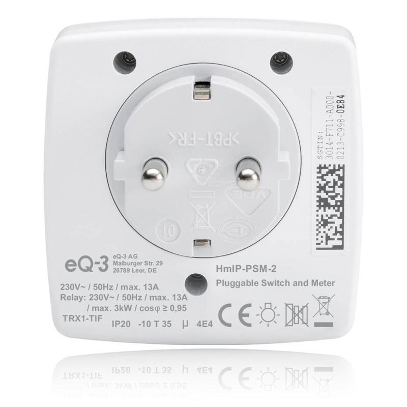Bezdrátová Spínaná zásuvka s měřením spotřeby (HmIP-PSM-2) je součástí systému chytré domácnosti Homematic IP a umožňuje prostřednictvím mobilní aplikace snadno ovládat připojené elektrické spotřebiče, měřit elektrické veličiny a současně funguje i jako opakovač signálu pro ostatní komponenty v systému.