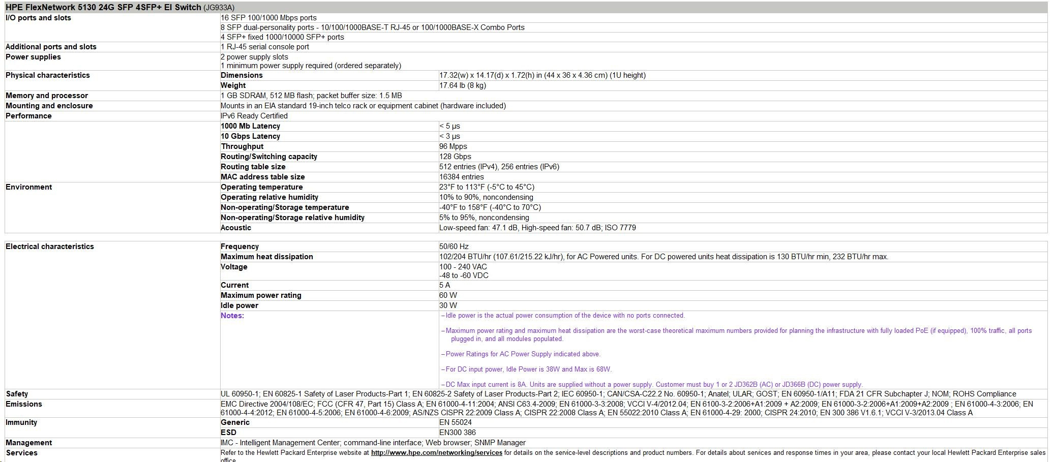 HPE FlexNetwork 5130 24G SFP 4SFP+ EI Switch (Must select min 1 power supply) RENEW JG933AR