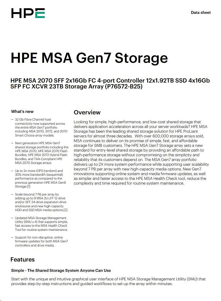 HPE MSA 2070 LFF 2x32Gb FC 4p Array.