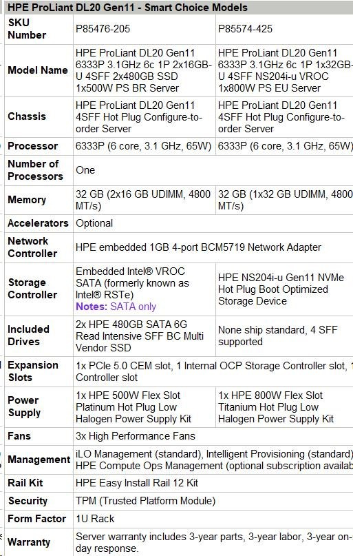 HPE PL DL20g11 6333P (3.1G/6C12T) 1x32G (P64339) NS204(2x480G) 4SFF VROC 1x800W 4x1G NBD333 Smart Choice