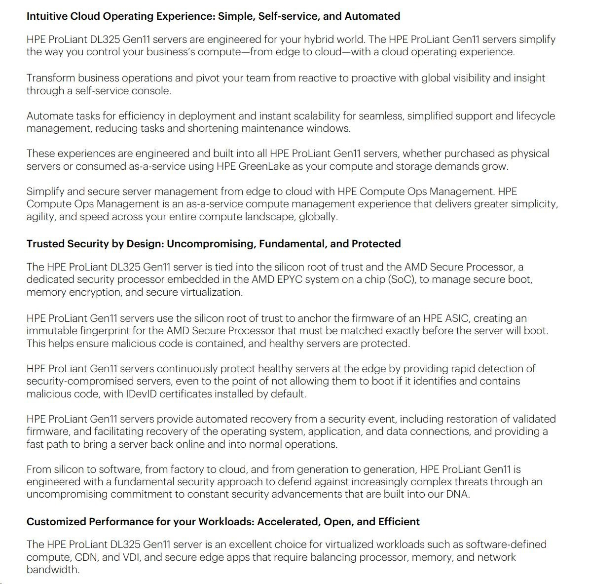 | Chassis | HPE ProLiant DL325 Gen11 8SFF Configure-to-order Server |