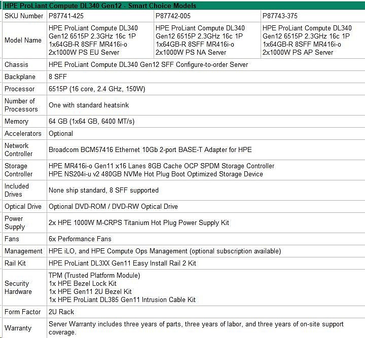 HPE PL DL340 Gen12 6515P (2.4/16C) 1x64G (P69728) NS204(2x480) MR416i-o 8SFF 2x1000W 10GbE NBD333 Smart Choice.