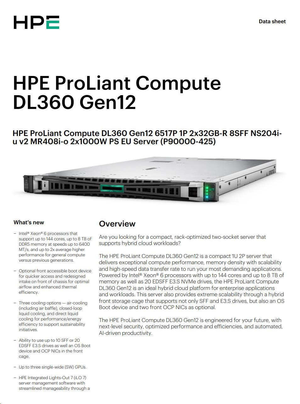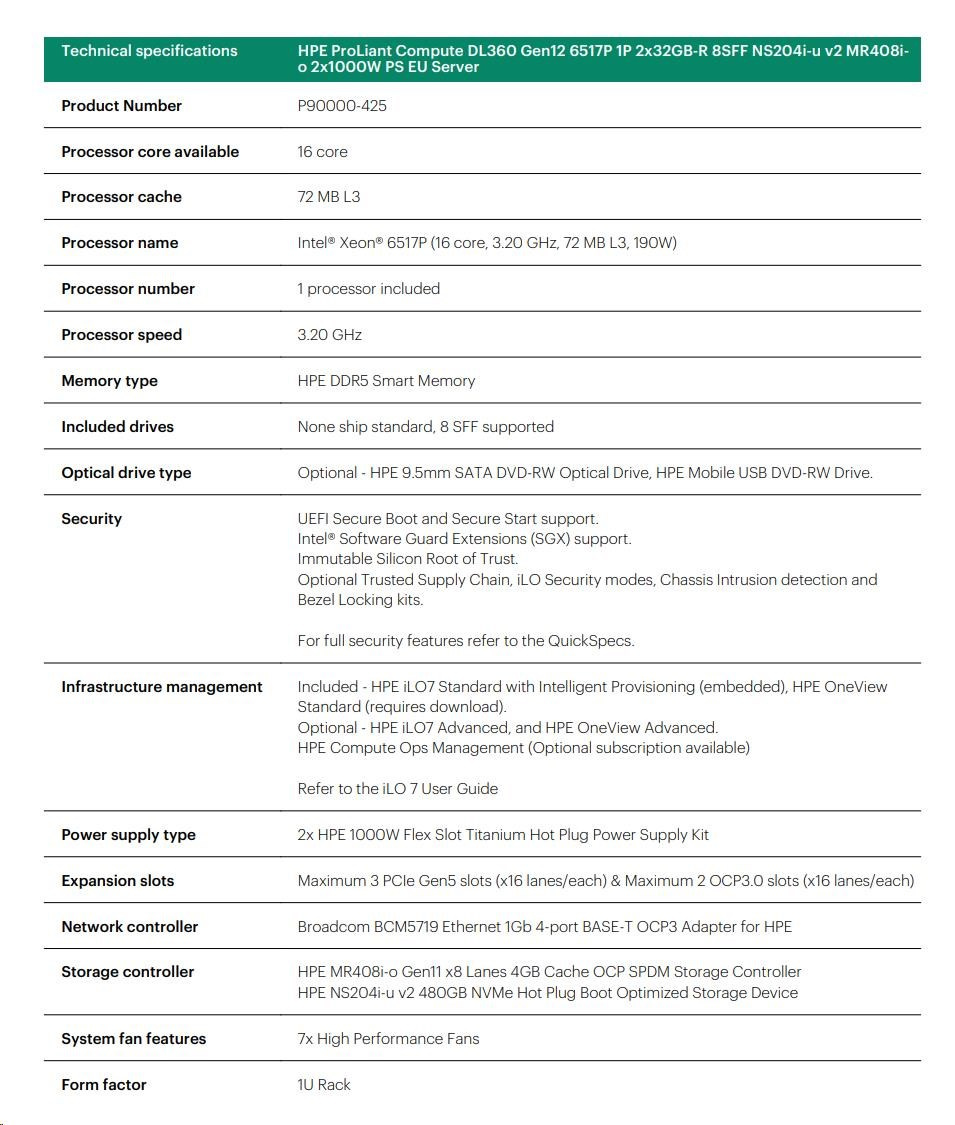 HPE PL DL360g12 6517P (3.2/16C) 2x32G (P69727) NS204 (2x480) MR408i-o 8SFF 2x1000W 4p1G NBD333 Smart Choice.