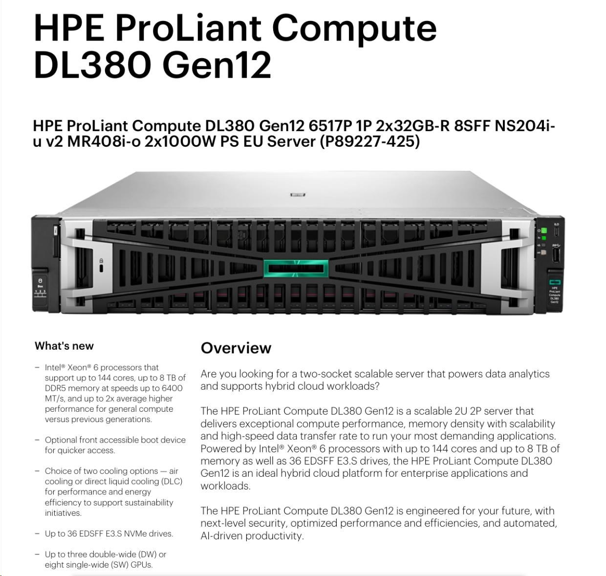 HPE PL DL380g12 6515P (2.2/16C) 2x32G (P69727) 2x480G MR408i-o 8SFF 2x1000W 2p10G-T NBD333 Smart Choice