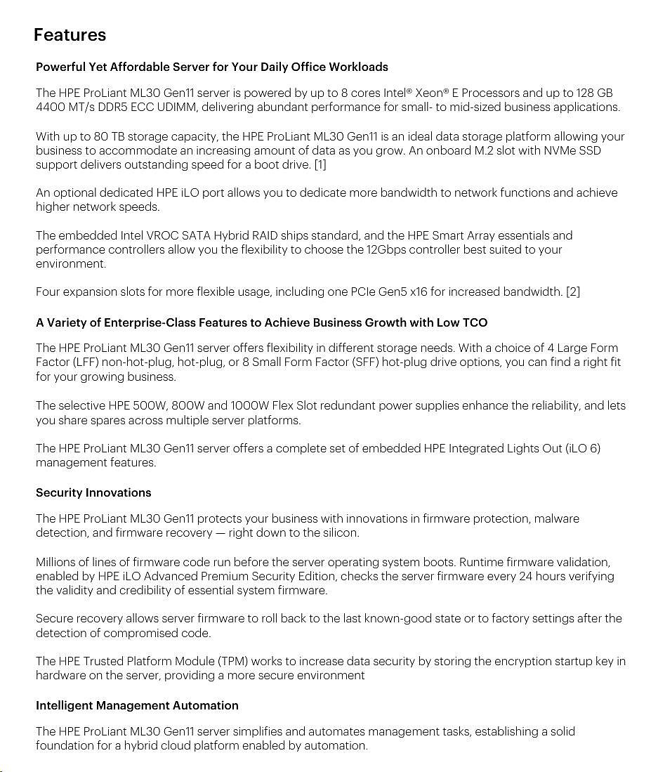 HPE PL ML30g11 6325P (3.5G/4C8T) 1x32G 2x960G SSD SATA 4LFF-HP VROC 1x1000W 4p1G NBD311 Smart Choice.