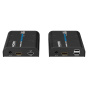 - Extender přenáší také USB, vysílač má jeden USB pro zapojení do počítače, přijímač má dva USB konektory pro zapojení například myši, klávesnice nebo dotykové obrazovky