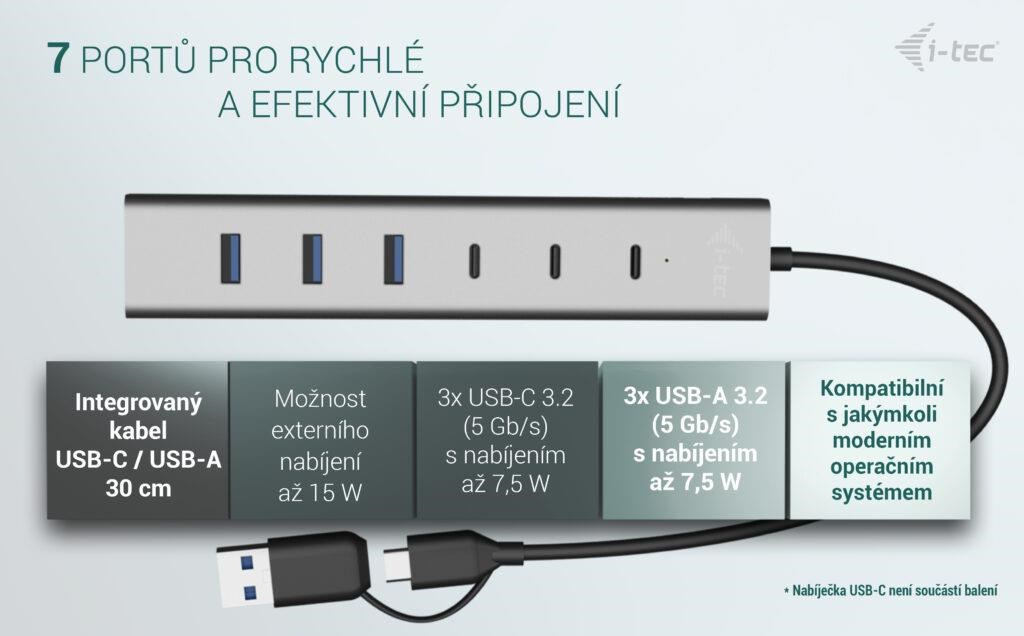 i-tec USB-C/USB-A Charging Metal HUB 7 port (3x USB-C, 4x USB-A)