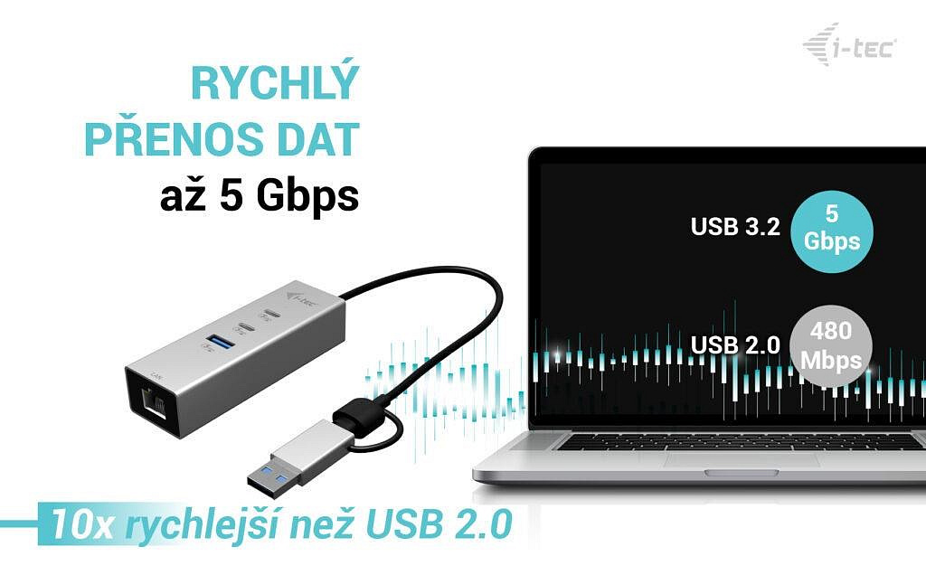 i-tec USB-C/USB-A Metal HUB 3 (2x USB-C, 1x USB-A) Port + 2.5GLAN