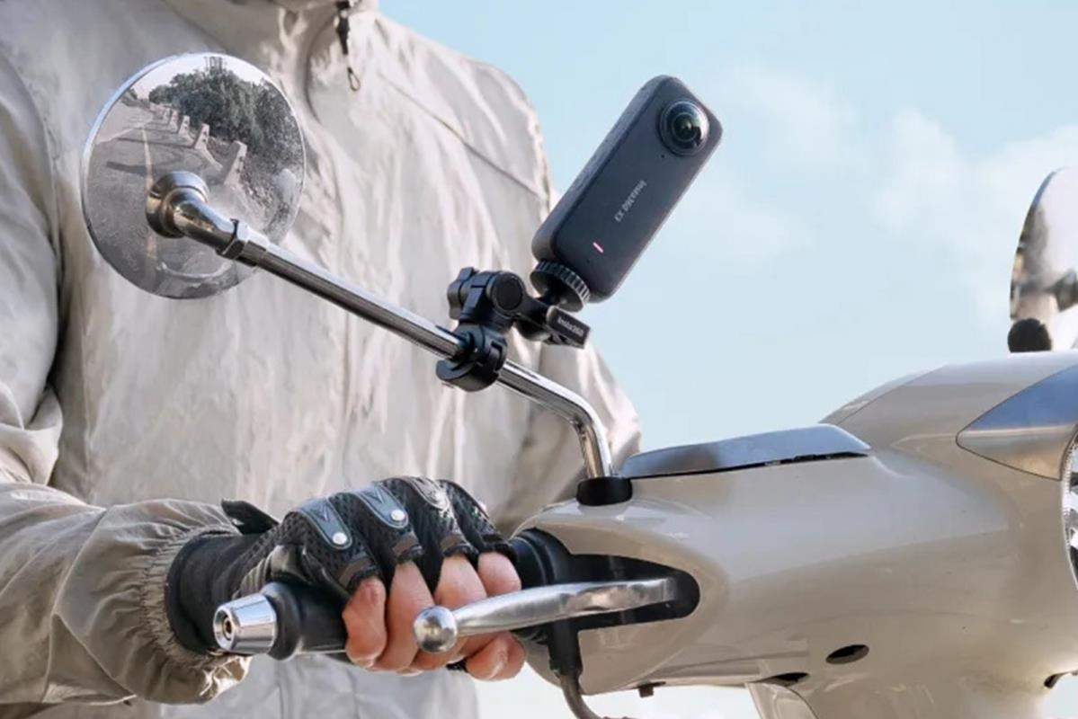 Držák na zrcátka motocyklu či scooteru, díky kterému pořídíte záběry "ze třetí osoby". Lze připevnit na řídítka o velikosti 6 - 15 mm..